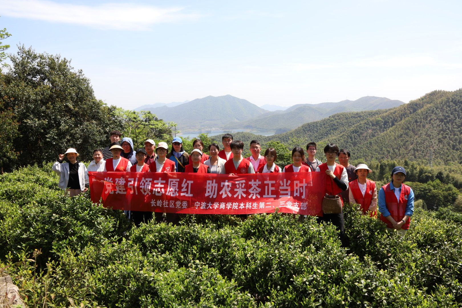 满园新芽,春山吐翠。眼下,正逢春耕生产时节,春茶采摘刻不容缓。为避免错过春茶采摘黄金期,4月16日,国产av影片 本科生第二、三党支部联合宁波市长岭社区党委开展“党建引领志愿红 助农采茶正当时”主题党日活动,校地志愿者一行20余人参加。