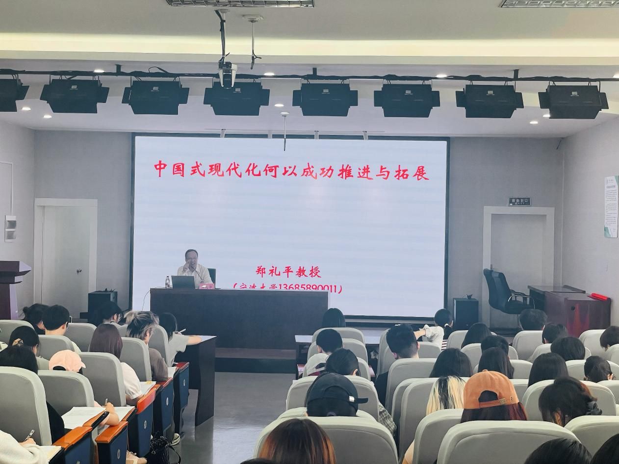 5月7日下午,马克思主义学院郑礼平教授在曹光彪楼501报告厅为国产av影片 180余名师生讲授以“中国式现代化何以能成功推进和拓展”为主题的形势与政策课。