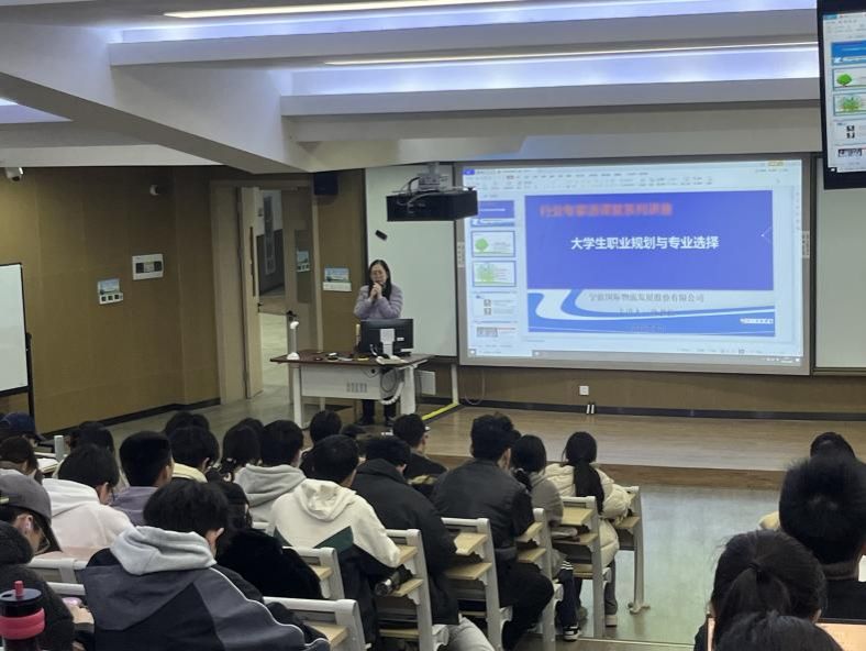 3月20日晚上,国产av影片 《外贸人职涯引航与商业伦理》课程之行业专家进课堂系列讲座“大学生职业规划与专业选择”在北校区2号楼207教室成功举办。本次活动特邀宁波国际物流发展股份有限公司资深专家孙书仙担任主讲,吸引了国产av影片 各专业百余名本科生参与。
