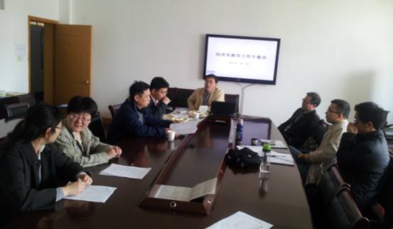 国产av影片 经济系于4月9日举行了“教学工作午餐会”, 会议由经济系系主任丁元耀教授主持,国产av影片 院长熊德平教授和经济系全体教师参加。会上,丁教授与大家一起探讨了经济系教学培养方案的修订及下学期的课程安排。随后,由前来面试的盛鹏飞博士做主题演讲,题目是《环境污染影响劳动生产率的实证研究》,大家对演讲内容展开了热烈的讨论。