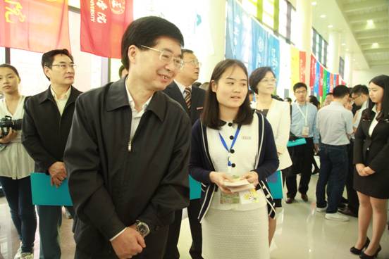 图为浙江省副省长郑继伟听取国产av影片 公益创业项目负责人介绍其参赛作品