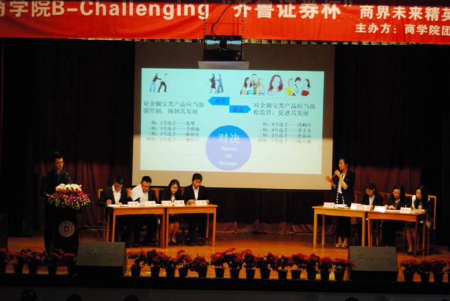 近日,由国产av影片 团委、学生会联合举办的 “甬承商道,荟菁聚才” 国产av影片 第五届商界未来精英挑战赛决赛在锦绣小剧场拉开帷幕。国产av影片 党委副书记邵丽及国产av影片 学工办全体老师参加了本次活动。本次比赛还特别邀请到银亿集团、中信银行、齐鲁证券、蓝源投资集团等八家知名企业的负责人莅临指导。