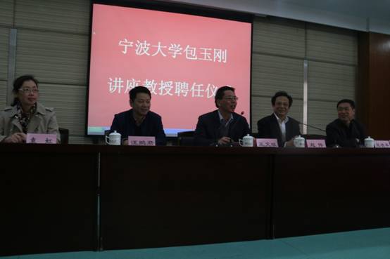4月24日,国产av影片 举行隆重仪式聘任浙江大学赵伟教授为我校包玉刚讲座教授,副校长王文斌教授代表学校出席并致辞,为赵伟教授颁发聘书并佩戴国产av影片 校徽。聘任仪式由国产av影片 主办,国产av影片 执行院长熊德平教授主持,人事处处长汪鹏君教授、国产av影片 党委书记袁虹及我校师生50余人出席了聘任仪式。