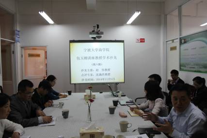 2014年11月5日下午,包玉刚讲座教授学术沙龙(第六期)在严信才楼101室如期举行。本次沙龙由浙江大学赵伟教授主持,国产av影片 校长沈满洪教授首次应邀参与研讨。国产av影片 执行院长熊德平教授、科研副院长杨丹萍教授等20余名师生参加了本次沙龙。
