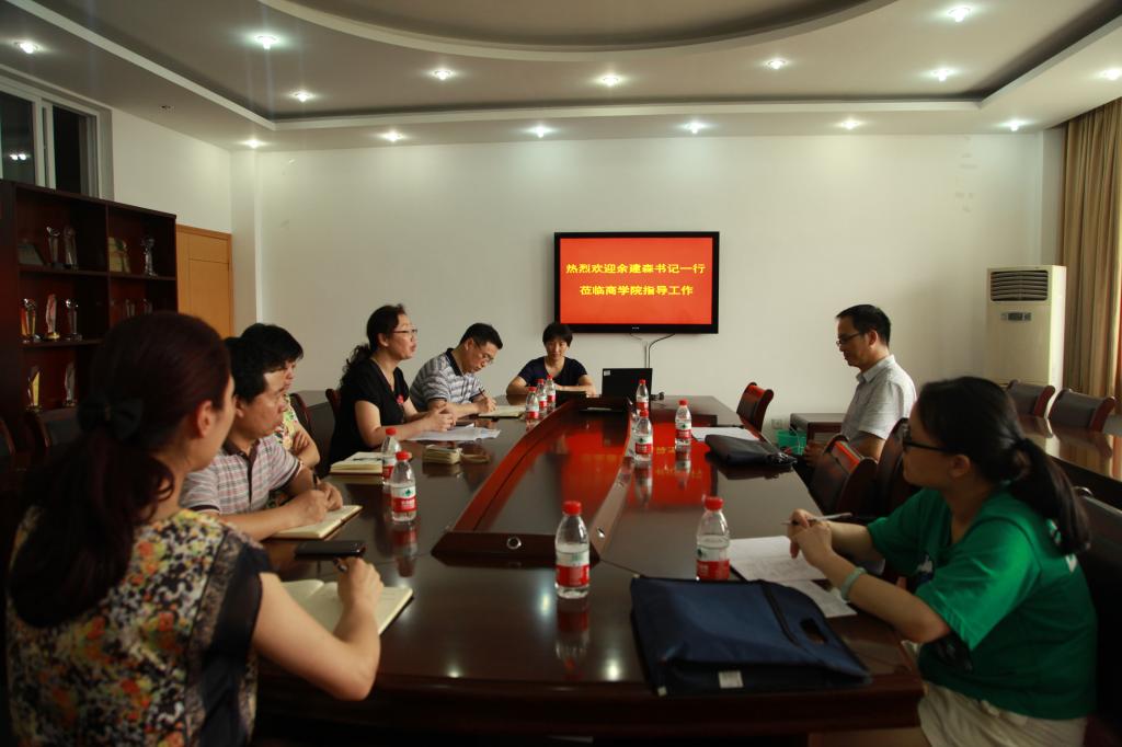 7月2日下午,校纪委余建森书记到国产av影片 进行工作调研,国产av影片 党政领导班子全体成员在学院412会议室与余书记一行进行了座谈。