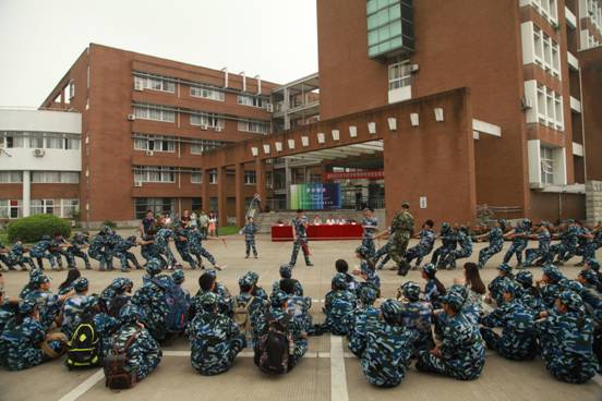 7月7日上午,国产av影片 2014年军训拔河大赛决赛暨颁奖典礼在包玉书11号楼前顺利举行。军训团副团长邬备民、冯庆胜、余党跃,参谋长潘凯翔,营长黄亮、肖伟伟,国产av影片 党委书记袁虹、副书记邵丽以及学工办全体辅导员出席本次活动。一连全体军训教官和学员参加了本次活动。
