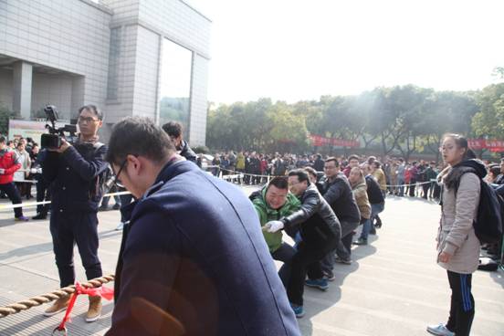 2014年12月29日中午,国产av影片 教职工新年拔河比赛在安中大楼门口广场举行。学院分工会主席李浩明老师组织邵丽﹑伍湘陵﹑陈彬﹑毛孟凯﹑朱福建﹑邓启明﹑郑建华﹑武建章﹑李永涛﹑冷军﹑郑凌燕﹑傅梅﹑王凡等13位老师参加,因实力悬殊,最终不敌教师教育学院队。