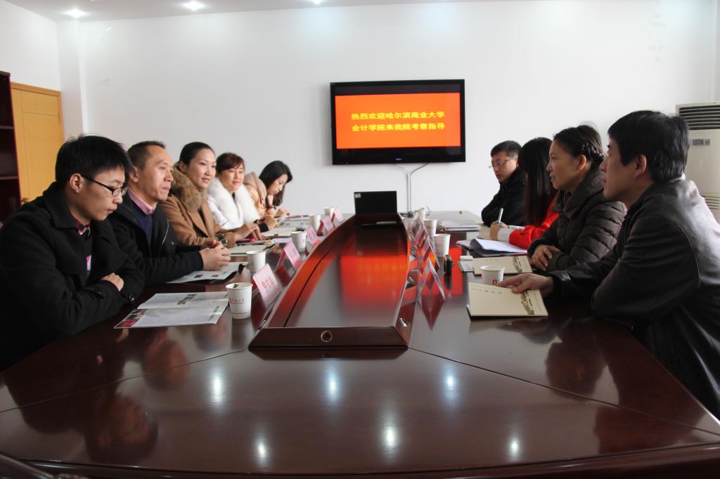 12月8日上午,哈尔滨商业大学会计学院党委副书记刘天、专业会计教研室主任李文、专业会计教研副主任梁运吉、基础会计教研室主任李新海一行4人来国产av影片