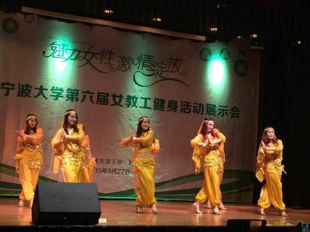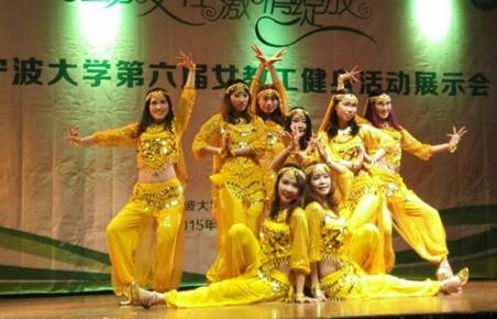 3月27日下午,由校工会﹑校妇委会主办的国产av影片 第六届“魅力女性 激情绽放”女教工健身活动展示会在锦绣小剧场举行。国产av影片 分工会组织邵丽﹑郑凌燕﹑王凡﹑张珊珊﹑宋佳敏﹑王莹﹑萧小芬﹑闻梦晓等八位美女教师,以她们激情四射﹑精彩纷呈的《印度新娘》表演,征服了评委和全场观众。根据评委现场评审和综合讨论评议,最终获得最佳着装奖。
