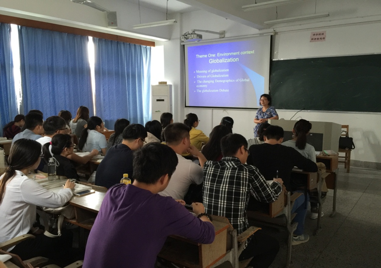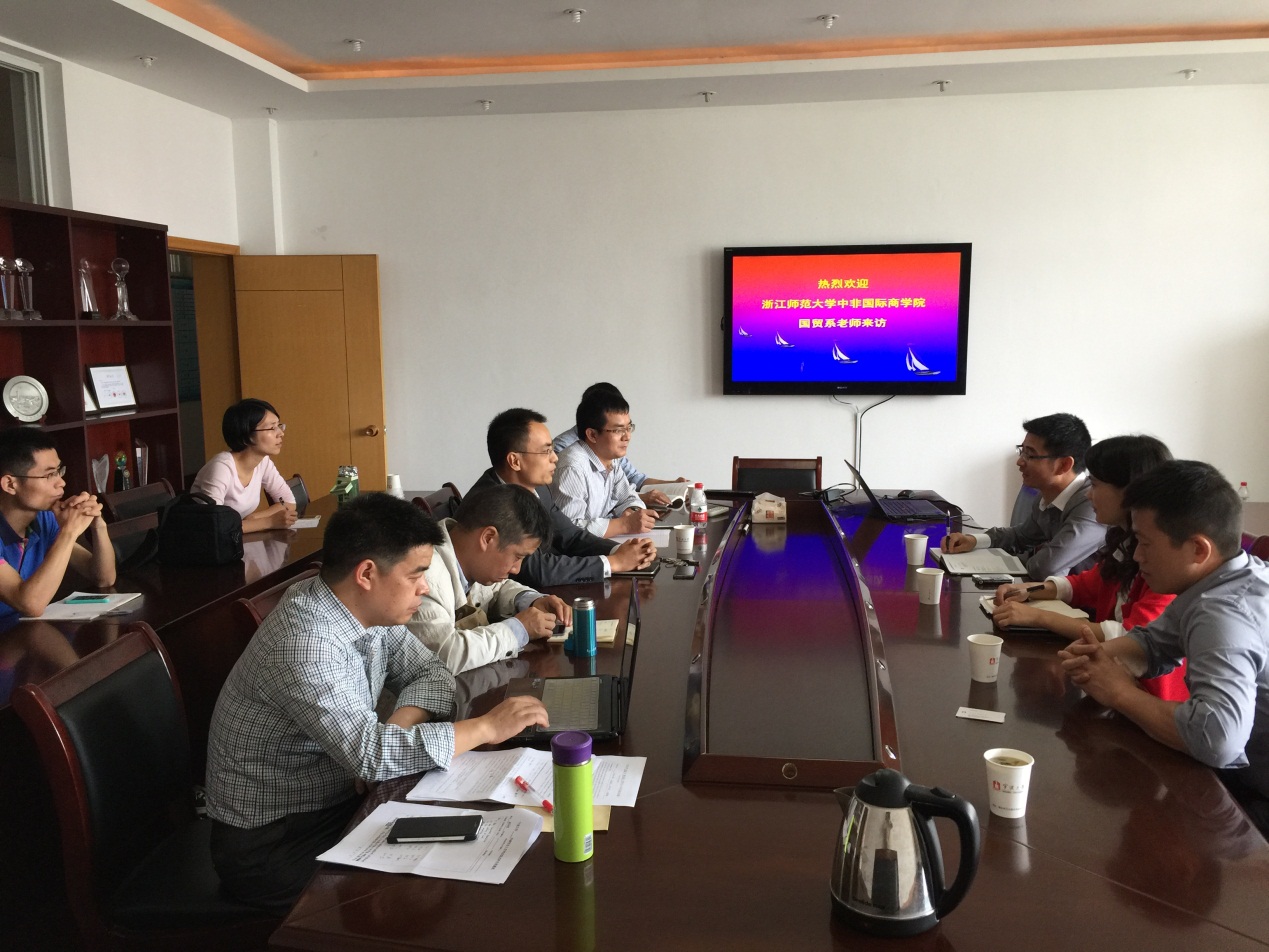 10月10日上午,浙江师范大学中非国际国产av影片 国际经济与贸易系郑小勇主任一行,前来国产av影片 国贸系进行全英文教学和留学生教育等方面交流与调研。调研组首先观摩了一节优秀教师代表陈琪主讲的全英文课程《国际企业管理( International Business Management)》,接着在国产av影片 412会议室就双方感兴趣的生源拓展、教学实施与师资培养等方面问题进行深入交流与探讨;盛沛锋副院长应邀参加座谈会,叶劲松、楼朝明、汪婷等10余位教师参与教学观摩和座谈。