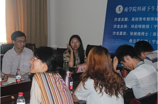6月25日下午,题为“高校青年教师如何开启科研之路”的国产av影片 “科研下午茶”暨“青年学术沙龙”活动,在412会议室如期举行。此次活动由国产av影片 国贸系主任、国产av影片 社会科学联合会学术部主任邓启明教授主持,浙江财经大学工商管理学院张维维博士和国产av影片 信管系主任俞立平教授担任主讲嘉宾;来自国产av影片 、人文与传媒学院、法学院等的20余位师生参加了此次沙龙,国产av影片 副院长杨丹萍教授、法学院副院长赵震宇教授等应邀与会。