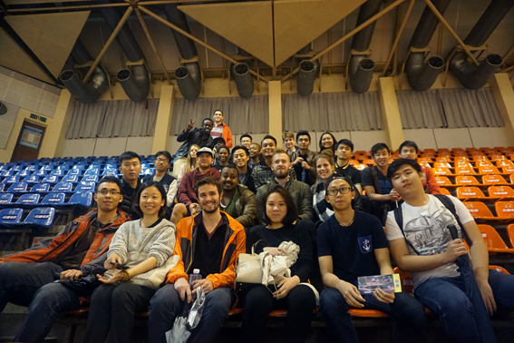 此次CBA赛事在宁波富邦体育馆举办。新疆队做客宁波挑战八一男篮,最终新疆队兵不血刃以118-77的大比分战胜了八一男篮。比赛现场气氛热烈,人声鼎沸,商院的留学生们很快顺势融入了现场加油呐喊的大军,和其他观众一起为两支参赛的队伍助威。尽管天下着蒙蒙细雨,但这没有影响同学们观看比赛的心情。在全场雷鸣般的掌声和潮水般的喊叫声中,同学们看得津津有味,并不时拿出手机用镜头记录两支球队比拼的精彩瞬间,同时俏皮地与带队老师互动,拍照纪念这次难忘的球赛之旅。