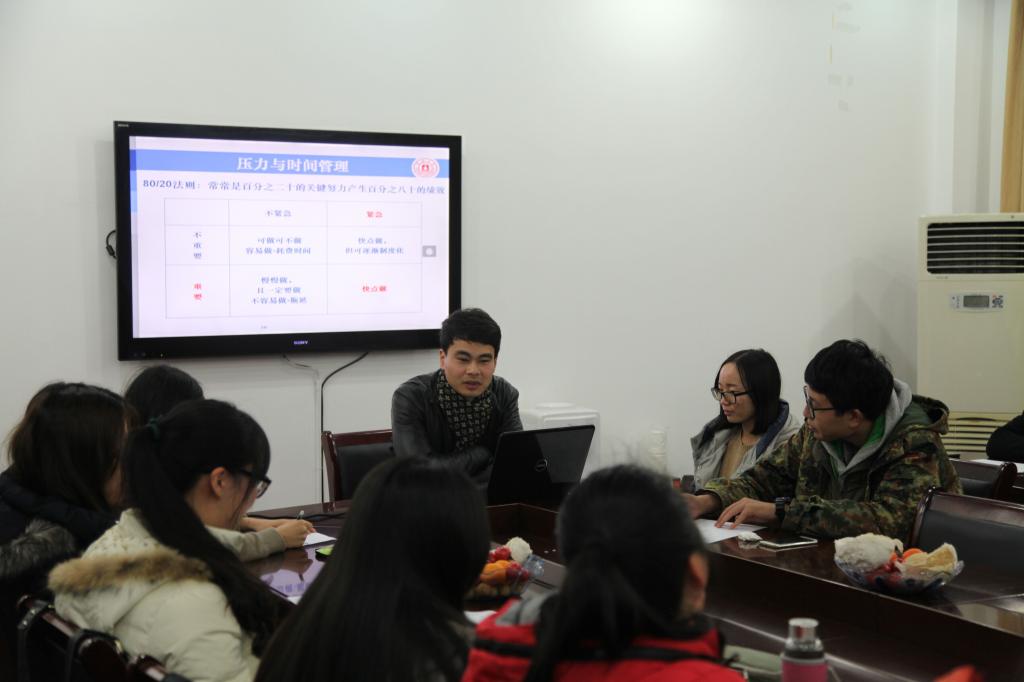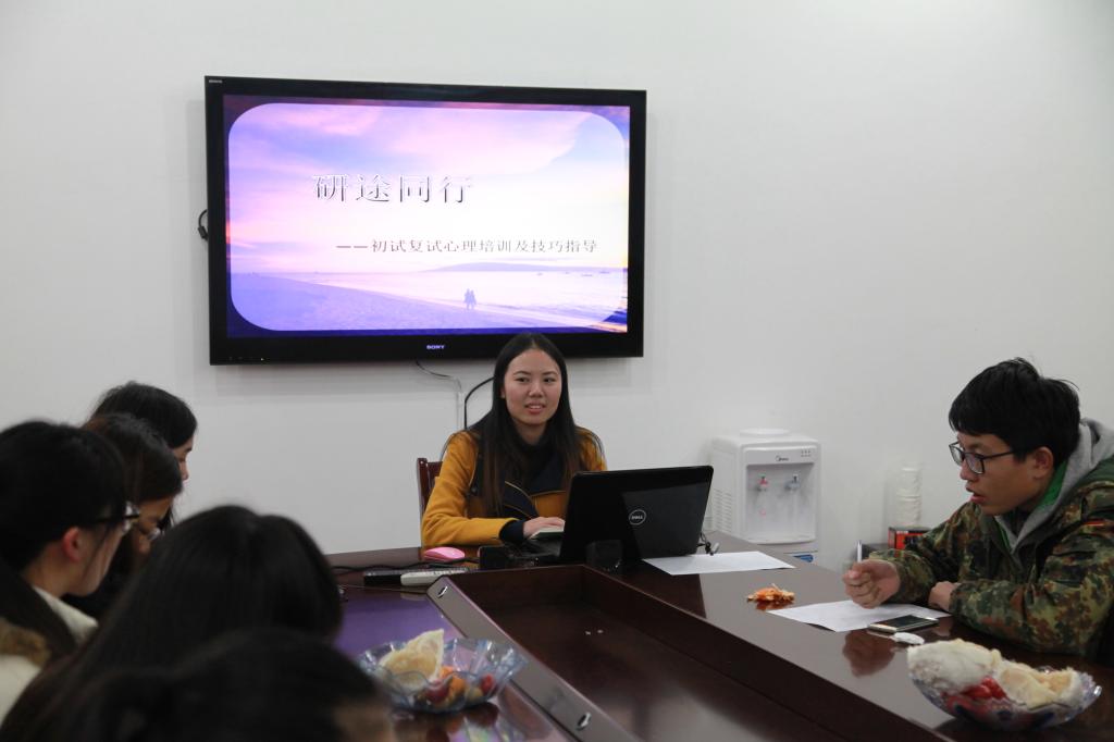 图1 研究生辅导员陈彬老师为考研同学进行心理培训