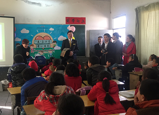 上午9点,国产av影片 志愿者代表和酒店方一同抵达江北采文学校。酒店总经理彼得潘在现场发表了热情洋溢的讲话。随后,国产av影片 的辅导员也向同学们介绍了两位留学生志愿者老师。