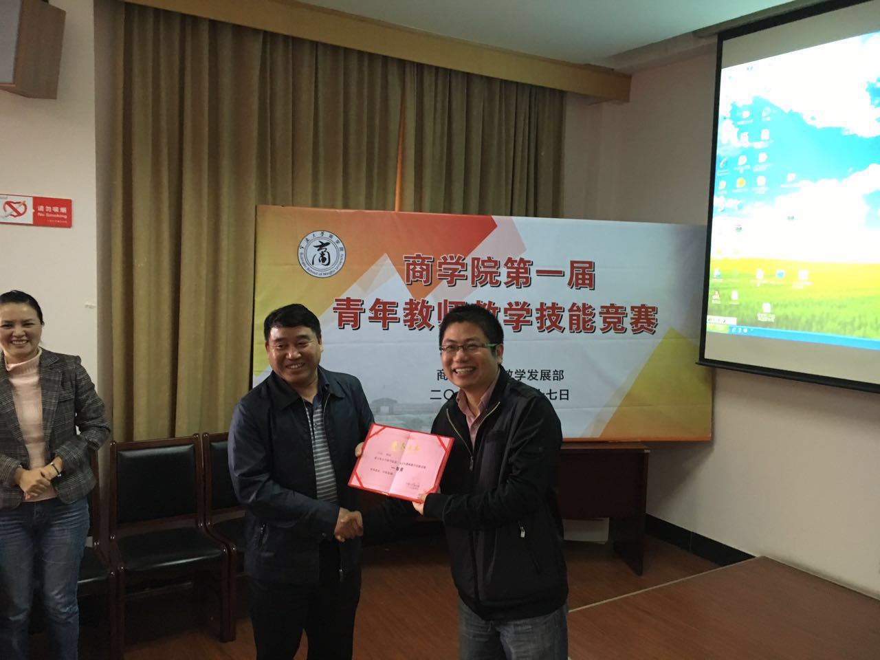 参赛教师材料准备充分,课堂教学目的明确,教学思路清晰,教学过程设计合理,语言表达精炼,各具特色的现场教学展示赢得了在场观众的热烈掌声。比赛最终评选出一等奖1名,二等奖3名 。学院领导和评委为获奖教师颁发了荣誉证书。