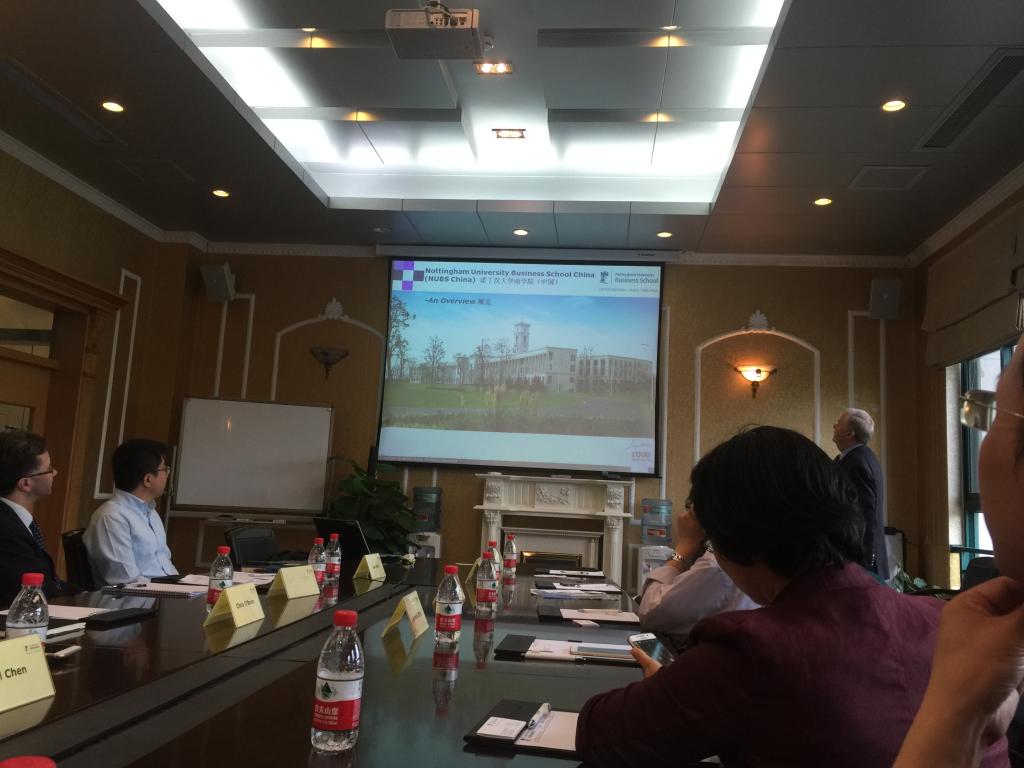 2016年5月20日,学院周新苗副院长、盛沛锋副院长带队、会计系黄惠琴老师、经济系丁元耀老师、金融系刘慧宏老师等一行7人赴宁波诺丁汉大学国产av影片 学习调研,受到国产av影片 院长欧博文教授、教学副院长孟石教授、国际交流办公室主任林涛、院长办公室主管陈芳老师的热情接待。