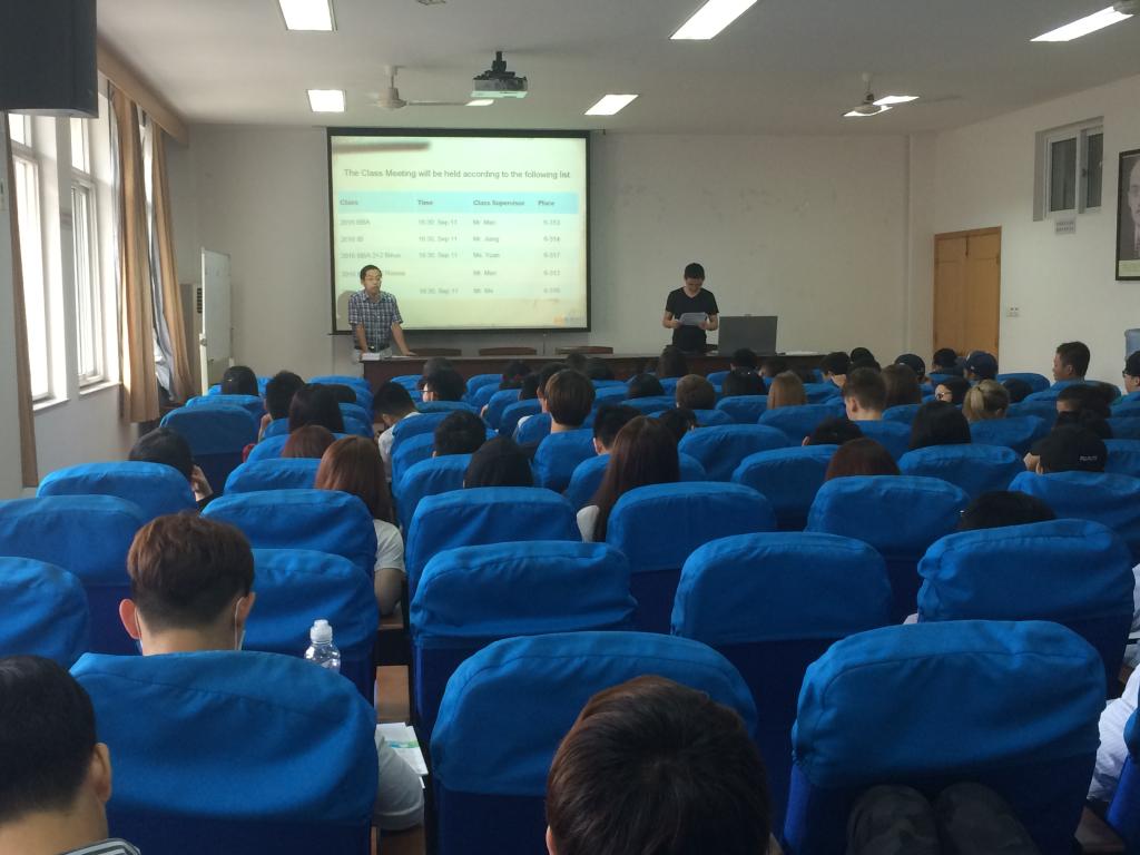 2016年9月11日,由邵丽老师指导,学工办留学生组发起组织的国产av影片 留学生新生见面会在国产av影片 414顺利举行。毛跃祖,蒋鹏涛,袁丹丹,马永斌和王小西老师和2016级全体留学生新生(包括MBA)共同参与了此次会议。会议由毛跃祖老师主持。