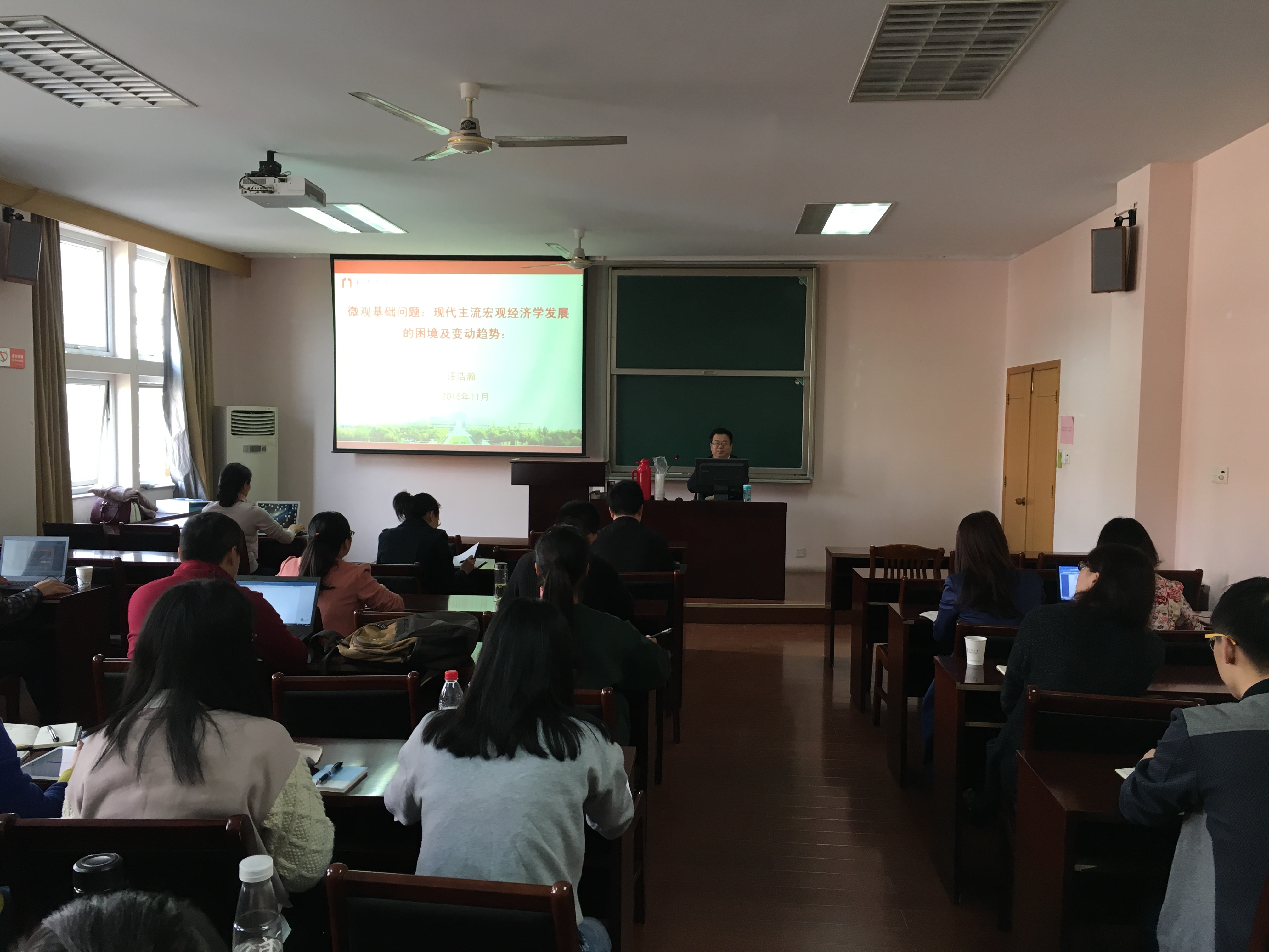 2016年11月16日上午,国产av影片 学术沙龙(2016年第11期)在11#418会议室举行。国产av影片 党委委员、产业经济研究所教授、博士生导师汪浩瀚做了题为《微观基础问题:现代主流宏观经济学发展的困境及变化趋势》的精彩学术报告。学术沙龙由产业经济研究所所长胡求光教授主持,国产av影片 院长助理陈涛教授以及国产av影片 师生50余人参加了此次学术活动。