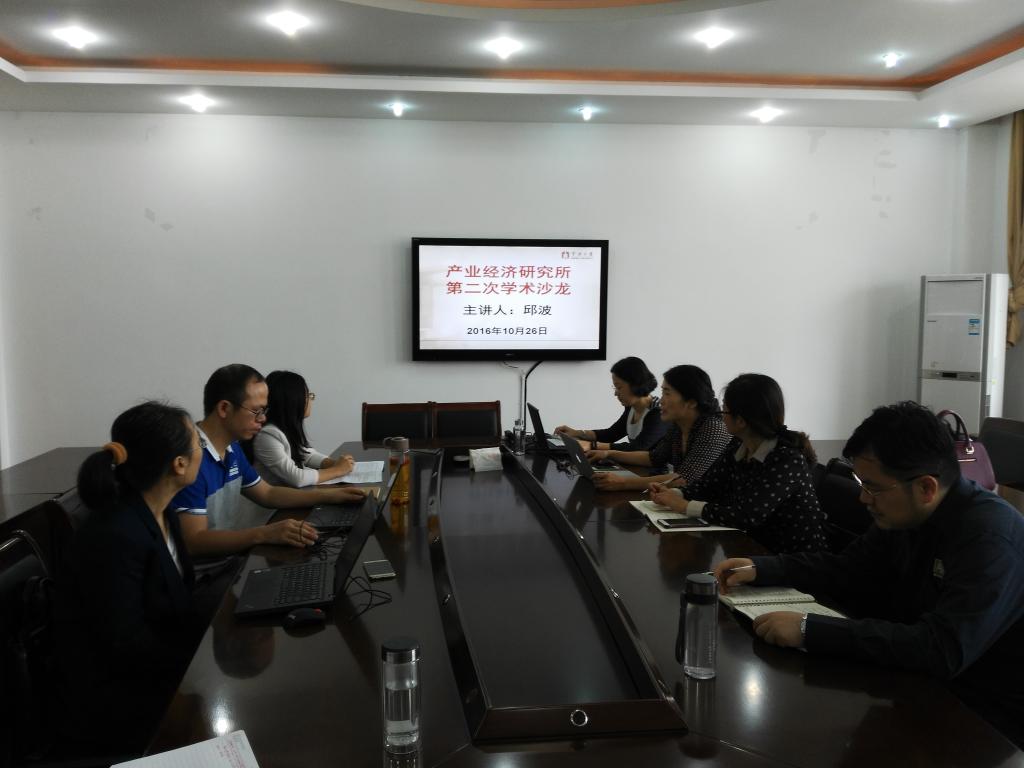 10月26日上午,国产av影片 学术沙龙(2016年第7期)在11#412会议室如期举行。学术沙龙由产业经济研究所所长胡求光教授主持,产业经济研究所邱波副教授做了精彩的学术报告,产业经济研究所教师参加了此次学术活动。