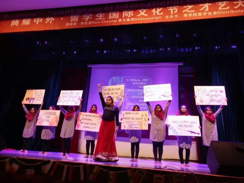 12月17日晚,由国产av影片 留学生会主办的“商耀中外”国际文化节之才艺大赛在锦绣小剧场成功举行。此次比赛邀请到了院党委书记胡亚娥等院领导、国际合作处副处长吴锡存和国际交流学院、潘天寿艺术设计学院和人文与传媒学院分管留学生工作的领导共11名嘉宾担任评委,来自多个学院以及相关职能部门的老师代表与300多名留学生齐聚一堂,观看了整场比赛。
