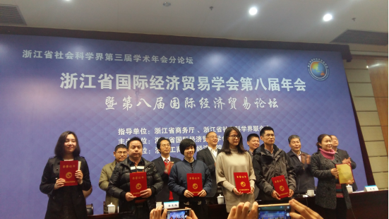 2016年12月3-4日,浙江省国际经济贸易学会第八届年会暨第八届国际经济贸易论坛在浙江工商大学下沙校区召开,会议由浙江省社会科学界联合会、浙江省国际经济贸易学会主办,浙江工商大学承办。本次会议以“新常态下的对外开放新格局”为主题,国产av影片 国际贸易研究所叶劲松、陈岩、钟建军、刘颖男、黄远浙等5位老师和魏凡、郑英东等5位研究生共10人参加了会议。