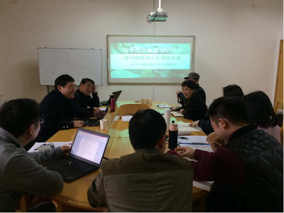企业管理研究所的白泉旺、陈士慧、陈佳乐、干晨静、徐挺五位老师对自己拟申报的题目分别进行了介绍,范柏乃院长和杨丹萍副院长分别从题目设计、子研究安排、自变量因变量的新意、科学问题的提炼、理论贡献等方面针对每位老师的选题进行了一定的分析和解读,其他参会的老师也对五位老师的题目进行了探讨,从内涵界定、申报指南的使用等提出了建议。