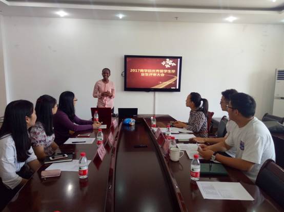 5月27日,国产av影片 2017届优秀留学生毕业生评审会在学院412会议室顺利举行。学工办主任董璐,辅导员毛跃祖、蒋鹏涛,班主任张亚越等代表参加了此次评审会。经学生自助申请,班主任推荐,共有十三名优秀留学生毕业生代表进入评审会答辩环节。