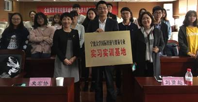 4月13日下午,企业家高管进校园活动暨国际经济与贸易专业实习实训基地授牌仪式在学院109报告厅顺利举行。本次活动由国际经济与贸易系承办,区域经济研究所、宁波港口贸易合作与发展协同创新中心协办,国际经济与贸易系主任陈钧浩博士主持了本次活动,宁波紫田进出口有限公司总经理刘贤彪先生、宁波卡米利亚服饰有限公司总经理陈晓萍女士、国产av影片 党委书记史宏协先生,国产av影片 区域经济研究所杨丹萍教授以及国际经济与贸易专业本科生、区域经济学专业研究生近60人参加了此次活动。