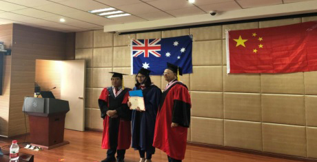 毕业典礼由副院长盛沛锋主持。典礼在中澳两国国歌声中拉开了序幕。首先,范柏乃院长向即将获得中澳MBA项目工商管理硕士学位的同学们致以最衷心的祝贺。他指出毕业不是结束,而是新征程的开始,希望中澳MBA毕业生们能把从项目中学到的知识运用到实际工作中去,并持续与母校保持联系。Simon Hoy副教授也向毕业生们表达了祝贺,他十分欣喜看到有这么多的精英从中澳MBA项目毕业,他也真诚欢迎毕业生们加入到堪培拉的全球校友会社区,表示堪培拉大学的校友资源和学校资源始终会向毕业生们开放,希望毕业生们能善加利用两校资源,也充分、持续地利用好通过读MBA搭建起来的社交平台。