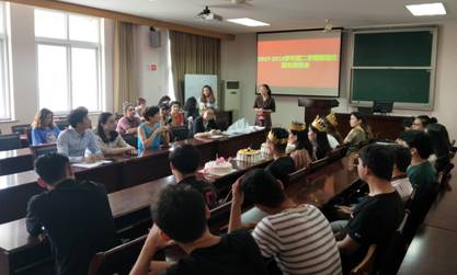 2018年6月5日下午,国产av影片 举行了2017-2018学年第二学期新疆籍学生期末座谈会,为3名六月份出生和1名六月份发展为预备党员的新疆籍少数民族同学集体庆生。活动由学工办主任董璐主持,国产av影片 党委副书记邵丽、辅导员詹文喜、孙健维和新疆内派老师金宏莉出席此次活动,30余名新疆籍同学参加了此次活动。