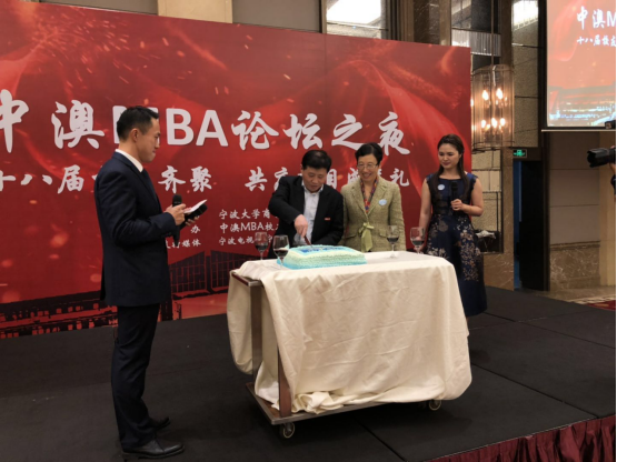 随后,嘉宾和校友们移步至隔壁大厅享用自助晚宴。校友会精心准备了庆祝中澳MBA项目十八岁成年礼的生日蛋糕。金院长和创始人邱教授一同登台分切生日蛋糕,并同全场校友们举杯祝福中澳MBA项目蒸蒸日上,越办越好。晚宴现场还为此次论坛举办做出贡献的校友和组织颁发了奖杯,进行了游戏抽奖。在众人的欢声笑语和举杯祝福声中,第九届国产av影片 中澳MBA论坛圆满地画上了句点。