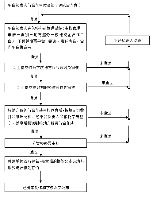 地方服务与合作处原则上在收到协议草案5个工作日之内反馈修改意见。协议未经地方服务与合作处审核通过而直接由合作单位签字、盖章的,地方服务与合作处原则上不予受理。