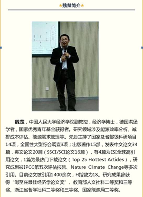 报 告 人:魏 楚 副教授(中国人民大学经济学院)