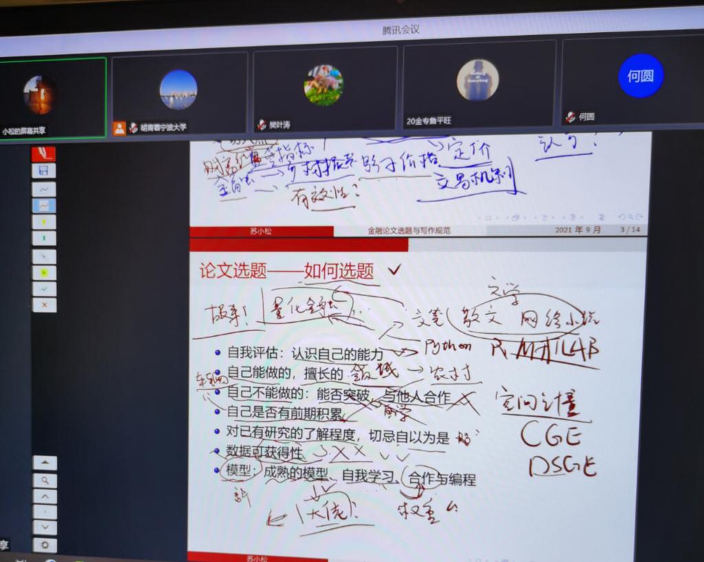 9月8日晚上,商学院金融硕士教育中心邀请苏小松博士作《金融论文选题与写作规范》线上讲座。金融系教师、金融专硕研究生、金融学硕研究生参加。金融硕士教育中心执行主任胡育蓉主持。