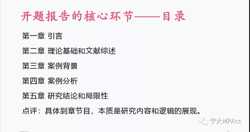 讲座的后半部分,王悦老师围绕开题报告的写作架构展开,对开题报告的写作范式、核心环节以及理论框架进行了细致介绍,并且对开题报告中每一环节所涉及的写作要求、注意事项进行了详细讲述。其中,王悦老师特别提到,目录是开题报告的核心环节,目录的本质是研究内容和逻辑的展现,因此同学们需要高度关注。