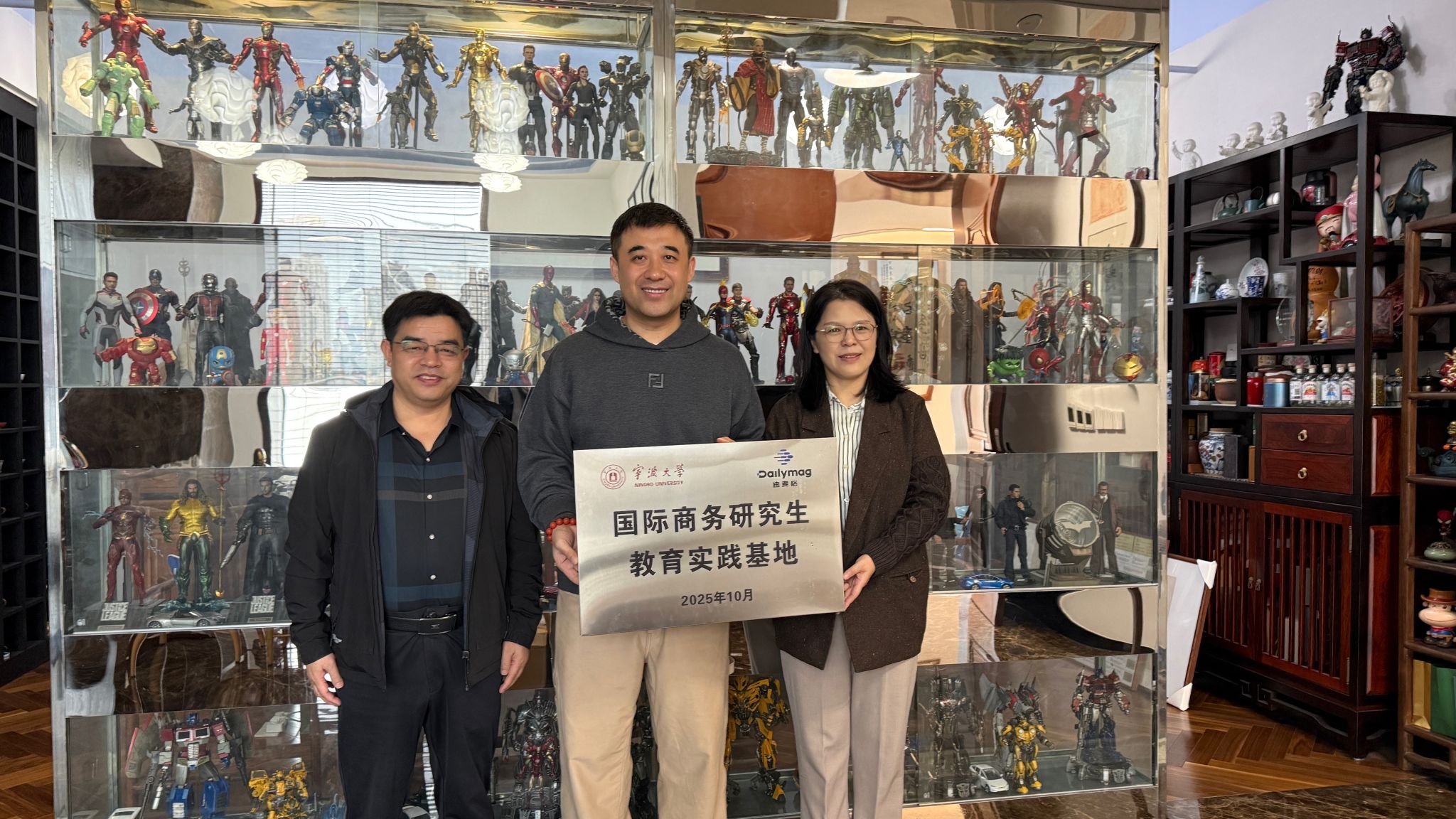 宁波市新东方工贸有限公司是一家历史悠久的工贸一体型外贸跨境电商企业,公司主营业务涵盖纺织服装、服饰及相关产品的制造与进出口,核心产品包括木制工艺品、创意家居与宠物用品等。公司跨境电商全渠道销售覆盖阿里巴巴国际站、亚马逊、独立站等平台,产品远销欧美、东南亚、拉美等市场。总经理朱秋城为全国知名财经作家,著有《跨境电商3.0时代》等著作,并担任中国跨境电商50人论坛专家研究员,带领企业从传统外贸成功转型为跨境电商标杆。2024年9月,朱秋城总经理受聘担任宁波大学MIB校外兼职导师。2025年11月11日,宁波大学MIB学位点杨丽华和董楠楠老师走访了宁波新东方工贸有限公司,双方就国际商务活动的最新发展形势以及推进MIB教育实践基地建设进行了广泛和深入的交流。