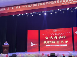 2023年9月20日,宁波大学商学院顺利举办2023年新生见面会暨兼职硕导聘任仪式,学院领导班子、系主任、学位点负责人、新生班主任、辅导员、行政教辅人员及全体新生出席。