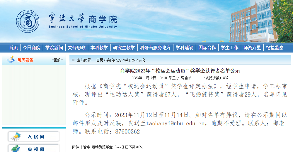 2023年11月2日-3日我校召开校田径运动会。青春的意义在于自强而不息,顽强而拼搏。我校商学院MIB研究生积极参与,在赛场上激情挥洒青春热血,不负青春之名。