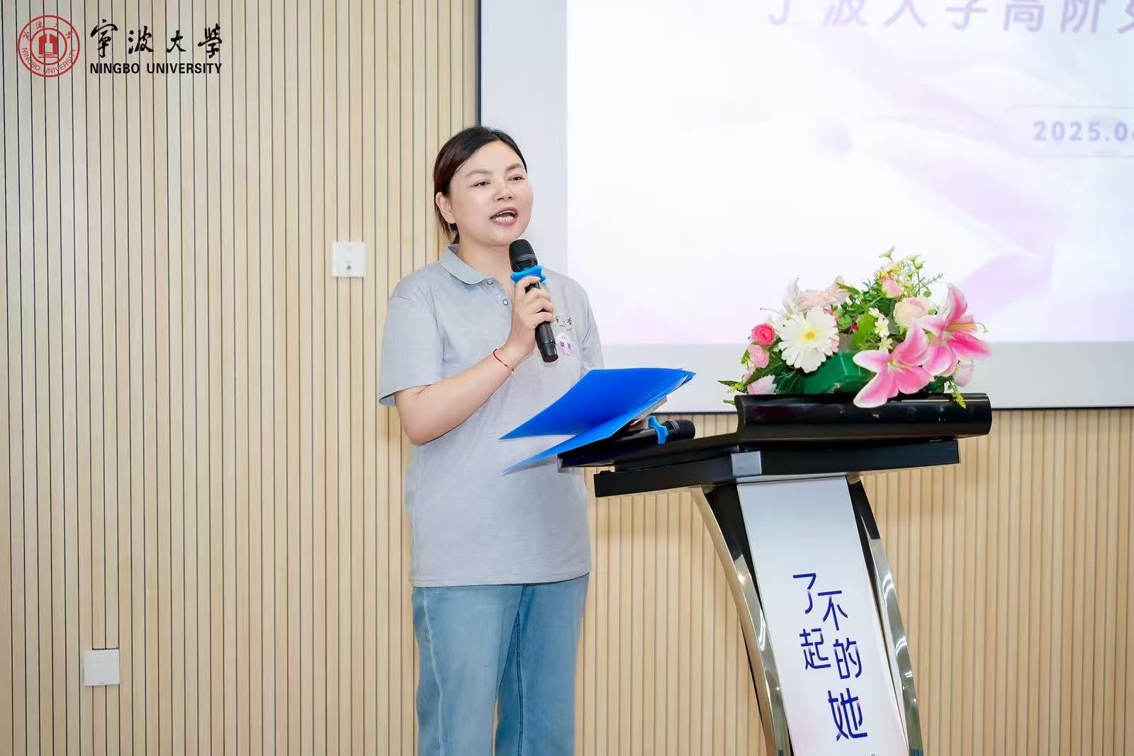 学员代表、宁波大学附属医院康宁医院门诊部书记李海霞在发言中指出,如今,女性在各领域不断突破,从实验室到商业谈判桌,从教育讲台到艺术创作前沿,女性的身影无处不在,她们以坚韧与智慧绽放光彩。期待同学们借此研习机缘,突破自我,以知识为翼,在经济浪潮中掌舵,在文化传承中深耕,在社会建设中担当,用“了不起”的成长,在经济、文化、社会建设中书写属于这个时代的“她篇章”。