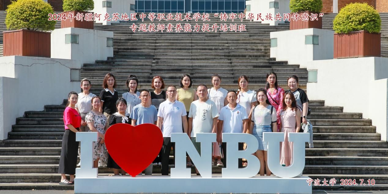 为深入贯彻落实主题教育、党的二十大精神,完整准确贯彻中华民族共同体意识,铸牢中国心、中华魂,推动各民族优秀文化的传承保护和创新交融。7月10日上午,在这个热辣滚烫而又充满活力的时刻,2024年新疆阿克苏地区中等职业技术学校“铸牢中华民族共同体意识”专题教师素养能力提升培训班在宁波大学商学院顺利开班。新疆阿克苏地区中等职业技术学校商贸物流教学部副主任米克尔阿依·阿布拉,宁波大学商学院党委委员朱一鸿出席开班仪式并致辞。来自阿克苏地区的数十位教师齐聚一堂,共同开启了一场知识的盛宴和心灵的洗礼。