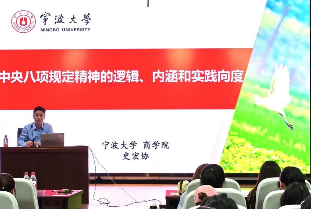 课程伊始,史宏协首先指出党的作风就是党的形象,关系人心向背,关系党的生死存亡。他系统梳理了作风建设作为党的光荣传统和独特优势的历史脉络。通过生动的历史事例,深刻阐释了我们党在长期实践中培育并始终坚持发扬理论联系实际、密切联系群众、批评和自我批评以及艰苦奋斗、求真务实等优良作风的重要性,帮助学员理解优良作风是党历经风雨、不断发展壮大的关键所在,并重点解读了新时代党的作风建设的制度内涵与实践要求。讲座最后,史宏协对全体学员提出殷切期望,希望大家深刻认识到加强自身作风锤炼的紧迫性,自觉以党员标准严格要求自己,从思想深处筑牢防线,在日常学习、工作和生活中积极践行党的优良作风,以实际行动争取早日入党。学员们纷纷表示,对中央八项规定精神的逻辑、内涵和实践向度有了更加深刻的理解和认识,会时刻以一名优秀共产党员的标准严格要求自己。