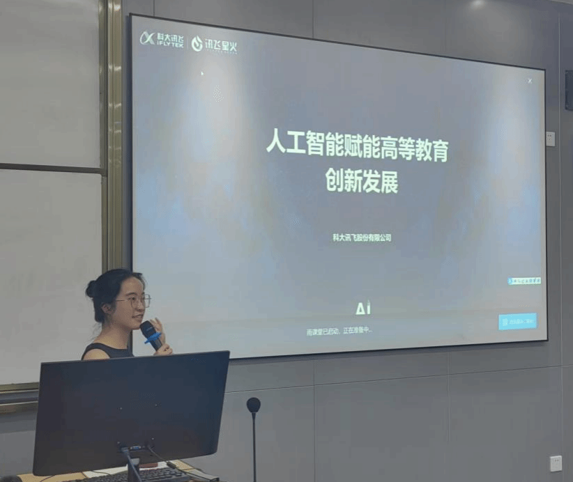 最后,科大讯飞企业经理刘娇以科大讯飞入选教育部“人工智能+高等教育”应用场景典型案例出发,围绕科大讯飞在高等教育的智能化布局展开。刘经理指出,科大讯飞 “星火大模型” 已实现 85 种语言翻译及方言识别,并与中科院共建 AI for science平台,在高校场景中,依托“1+N”矩阵式教学模式,打造AI虚拟教师、智能编程教学系统等应用,更好推动人工智能通识教育在国产av影片 等高校的落地。