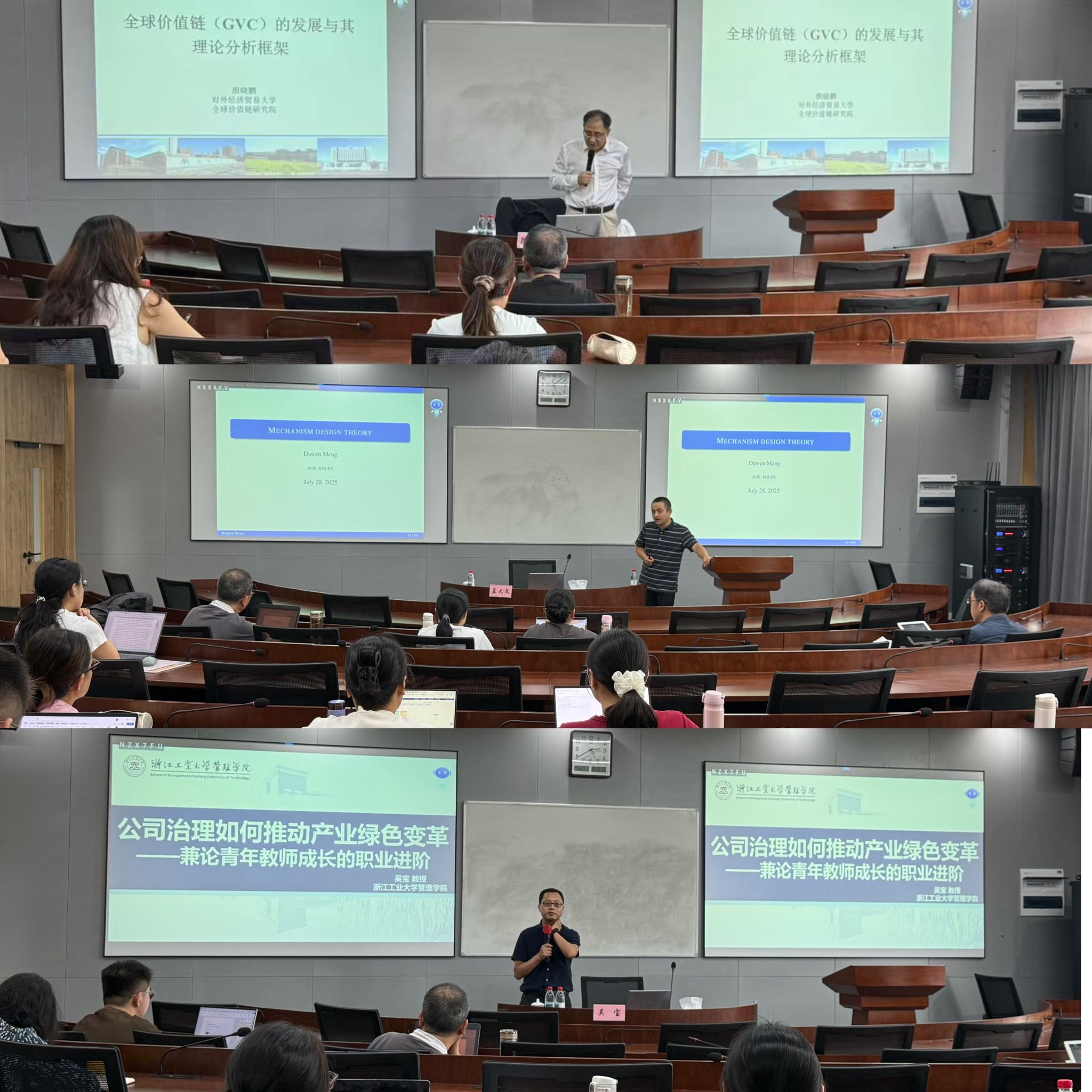 为进一步提升我院教师科研水平和学术研究能力,宁波大学商学院于7月28日和29日举办了2025年第九届暑期高级研修班。此次研修班共三场高质量科研专题讲座,讲座围绕全球价值链、机制设计理论和公司治理与绿色创新等前沿主题展开,受到学院师生的广泛欢迎与一致好评。