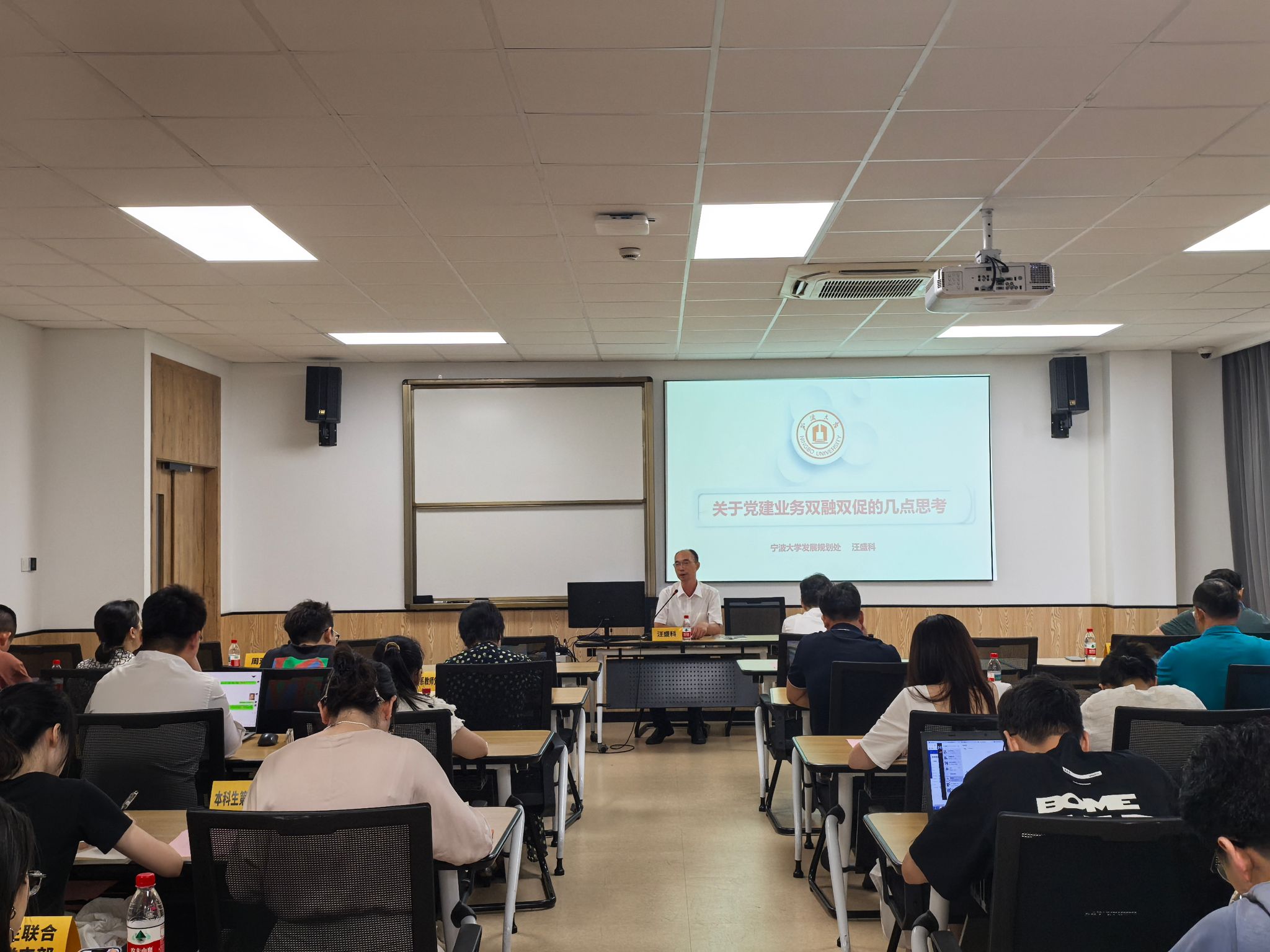 9月10日,商学院在曹光彪楼314教室召开基层党支部书记例会暨专题培训会,会议由院党委书记史宏协主持,邀请校发展规划处处长汪盛科作专题培训辅导,全体师生党支部书记及支委委员近50人参加。