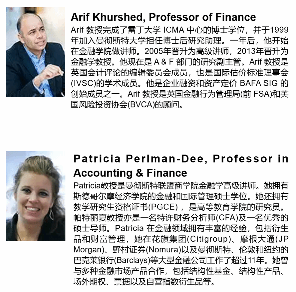 项目中的专业课程均为曼彻斯特大学商学院会计与金融专业本科学生所入读的专业必修课程,全程由曼彻斯特大学商学院的全职教授授课,使得参加项目的同学可以获得最原汁原味的曼大学习体验。