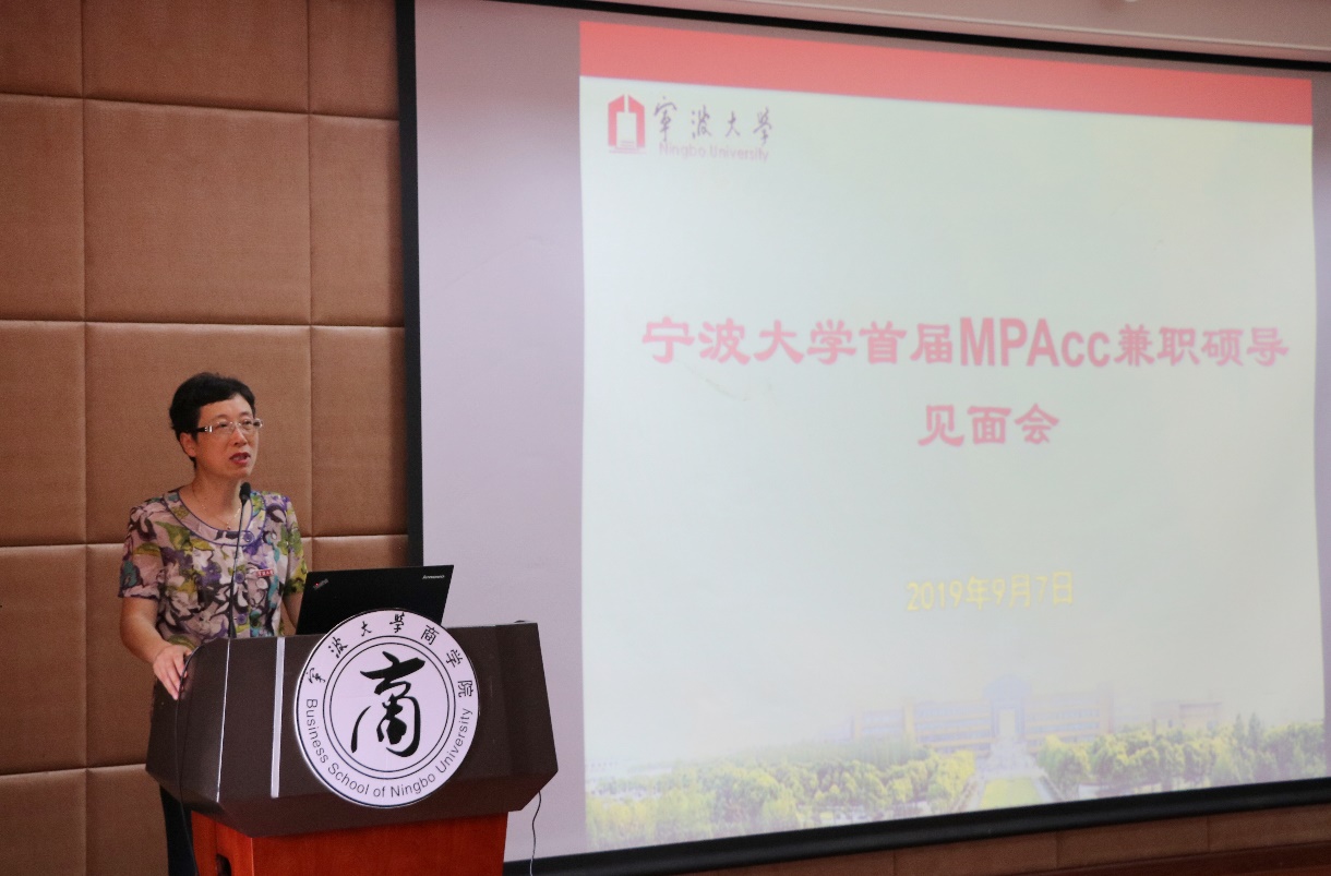随后五位MPAcc兼职硕导代表分别结合各自领域进行了自我介绍。宁波世明会计师事务所有限公司董事长李钢首先对世明事务所发展历程进行了简单介绍,积极肯定了校外特聘兼职硕导制度,表示这一制度既培养了学生的创新精神和实践能力,又达到了校企双向互动发展;香溢融通控股集团股份有限公司副总经理沈成德结合自己一路求学的亲身经历,倡导学生在学术上的自信态度,并认为真正优秀的人才应该承担对社会的责任;之后,舜宇集团有限公司总裁孙泱提出要做一个既具有会计知识又具有专业知识的复合型人才,并表示将通过丰富的课程资源、行业资源和授课师资等为同学们提供行业前沿技术指导和应用发展,帮助同学们学有所成;雅戈尔集团股份有限公司副总经理刘新宇通过几个富有意义的亲身实例来告诉同学们坚持的力量和态度的重要性,提出要将实务走在理论与政策之前,并鼓励广大学子们多学多看多实践;最后,慈溪农村商业银行副行长戚建明结合自己的工作经验,表明始终坚持金融是为实体经济服务的原则,作为金融与实体经济的纽带,推动国家经济发展。