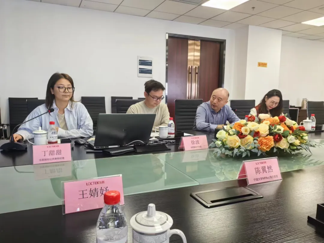 副院长彭新敏教授、MPAcc执行主任陈翼然副研究员与友校吉林大学商学与管理学院副院长李雪灵教授带领研究生团队赴宁波乐歌人体工学科技股份有限公司(以下简称“乐歌股份”)调研。乐歌股份副总朱伟、IT总监徐波、财务总监梅智慧、公共事务经理丁甜甜及相关工作人员热情接待了调研团队一行。