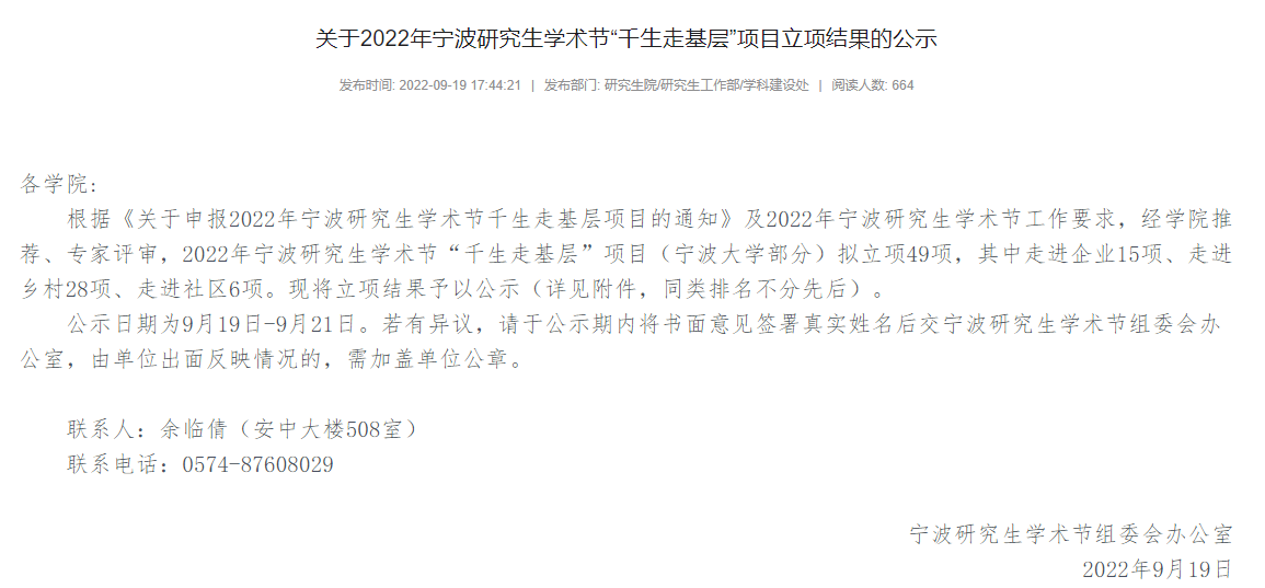 根据《关于申报2022年宁波研究生学术节千生走基层项目的通知》及2022年宁波研究生学术节工作要求,经学院推荐、专家评审,2022年宁波研究生学术节“千生走基层”项目(国产av影片