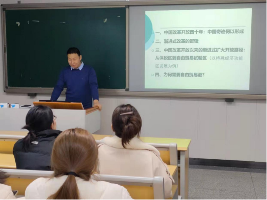 李局长的讲座立足中国改革开放以来经济发展的现实问题,从理论推演到现实,向老师和同学们展示了我国自贸区等特殊经济功能区建设的一副蓬勃画卷,同时也给同学们留下了无尽的思考空间。