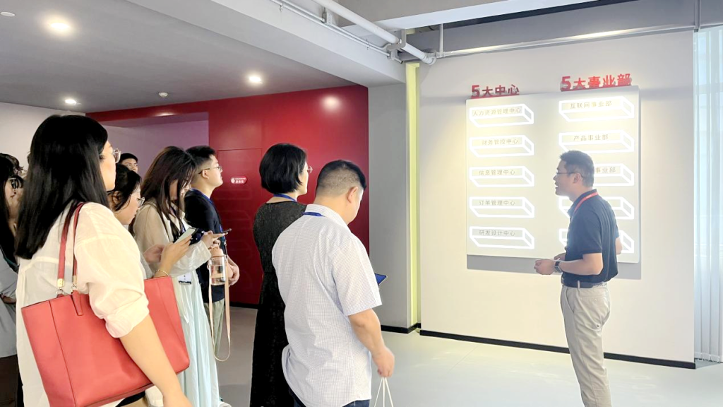 在参观过程中,豪雅集团人力资源副总监刘大伟先生向到访学生介绍了公司员工风采、文化体系、员工生涯发展路线、党建风采、发展历程。在谈到售后服务时,刘副总监解释到,除了智能化的物流配送系统,豪雅更注重消费者体验,包括到达目的地之后,快递人员需联络客户完成产品当面交付工作。结合客户需求,豪雅物流还可以提供定时定点送货、室内送货、送货、上楼安装调试等个性化服务,让产品供应链、物流供应链具备智能之星,承载人文温度。
